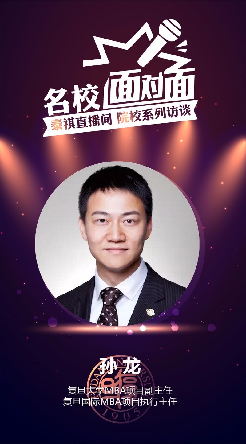 复旦大学MBA项目副主任兼复旦国际IMBA项目执行主任孙龙老师8月1日做客泰祺直播间,从多个方面与大家分享就新年度的招生政策及项目特点,主持人也问了众多考生关心的面试问题。